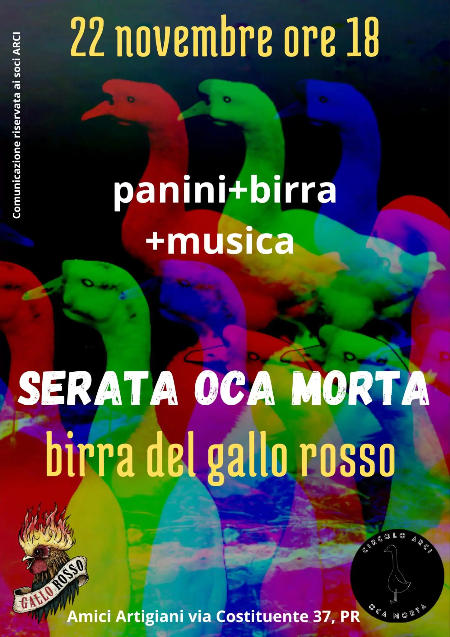 Birra Gallo Rosso vi aspetta venerdì 22 novembre, dalle 18, al Circolo ARCI Oca Mortauno dei circoli più iconici e storici di Parma.