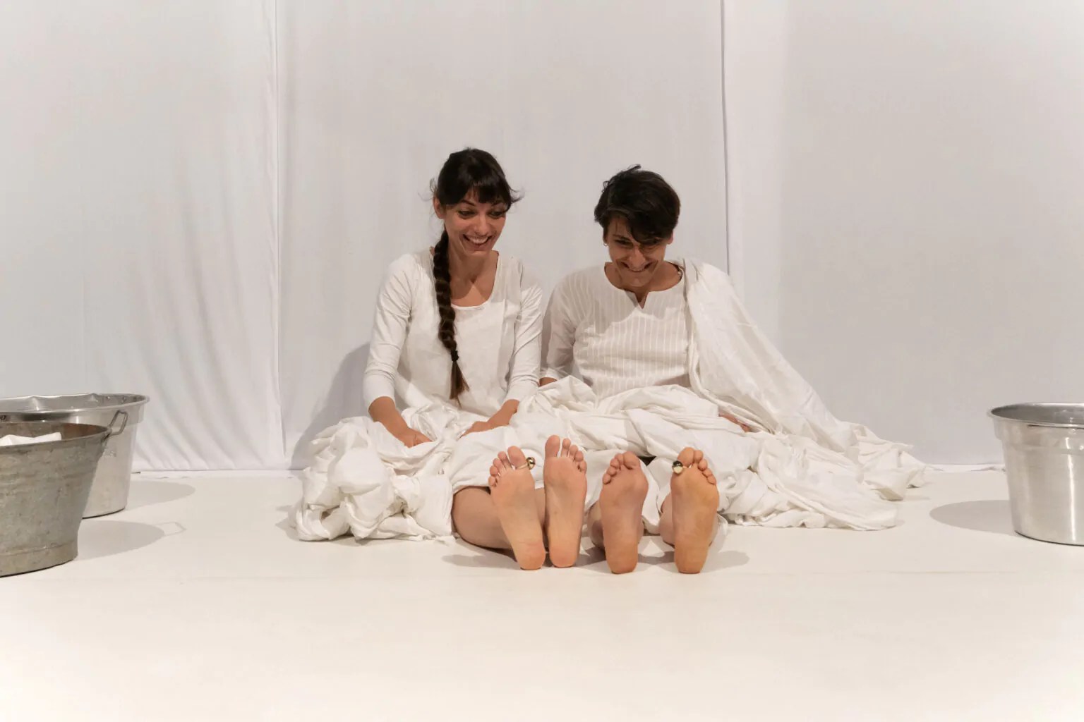 LàQua è un piccolo canto che riecheggia dalla pancia della mamma. E’ il suono del primo elemento che accompagna, protegge e culla la vita intrauterina. LàQua è il canto del primo viaggio che compie una creatura alla nascita. Un piccolo inno alla vita, all’acqua che la accompagna. Il titolo è una scomposizione sonora della parola “acqua” e rimanda al gioco di lallazione e sillabazione che accompagna la prima fase delle esplorazioni vocali. Il tessuto sonoro dello spettacolo è un canto polifonico che utilizza proprio la ritmica della lallazione, della sillabazione e della ripetizione