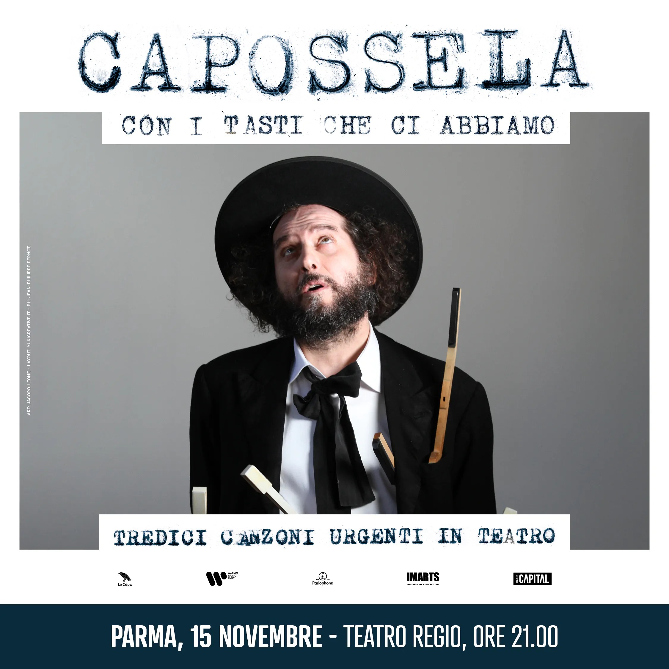 I biglietti per il concerto di Vinicio Capossela in programma al Teatro Regio di Parma sono in vendita da oggi giovedì 11 maggio alle ore 14:00 tramite il circuito www.ticketone.it e presso l’Arci di Parma (Via Testi, 4 – PR)
